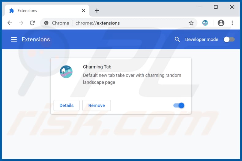 (at the top right corner of Google Chrome), select "More tools" and click "Extensions". Locate "Charming Tab" and other recently-installed suspicious browser add-ons, and remove them.