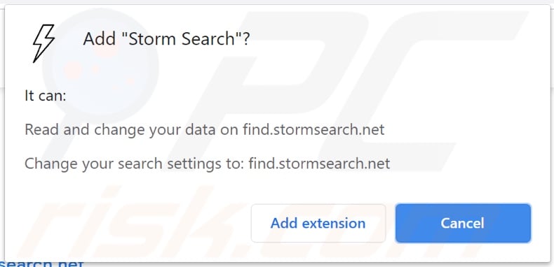 Storm Search browser hijacker asking for various permissions: