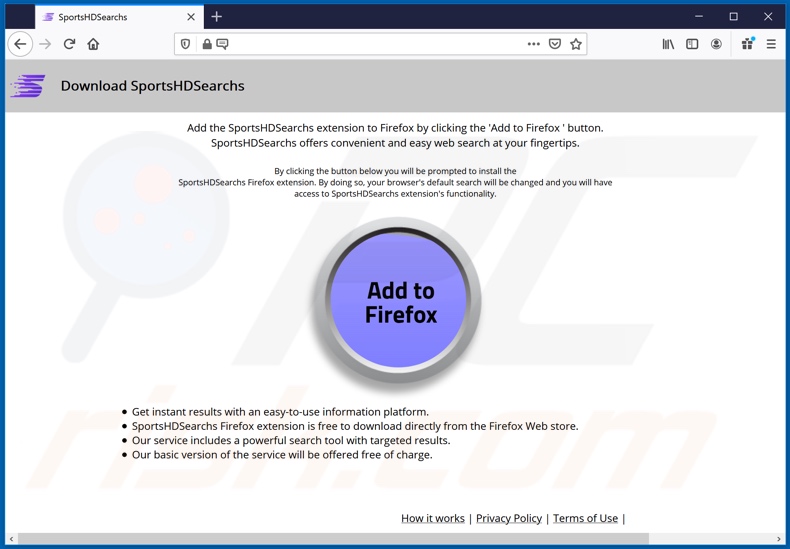 Furthermore, SportsHDSearchs can track data. It can monitor browsing activity (URLs visited, pages viewed, search queries typed, etc.) and collect personal information extracted from it (IP addresses, geolocations and other details). The gathered data is usually monetized by browser hijacker developers through sale to third parties (potentially, cyber criminals).
