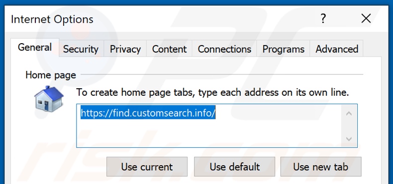 (at the top right corner of Internet Explorer), select "Internet Options", in the opened window remove hxxp://customsearch.info and enter your preferred domain, which will open each time you launch Internet Explorer. You can also enter about: blank to open a blank page when you start Internet Explorer.