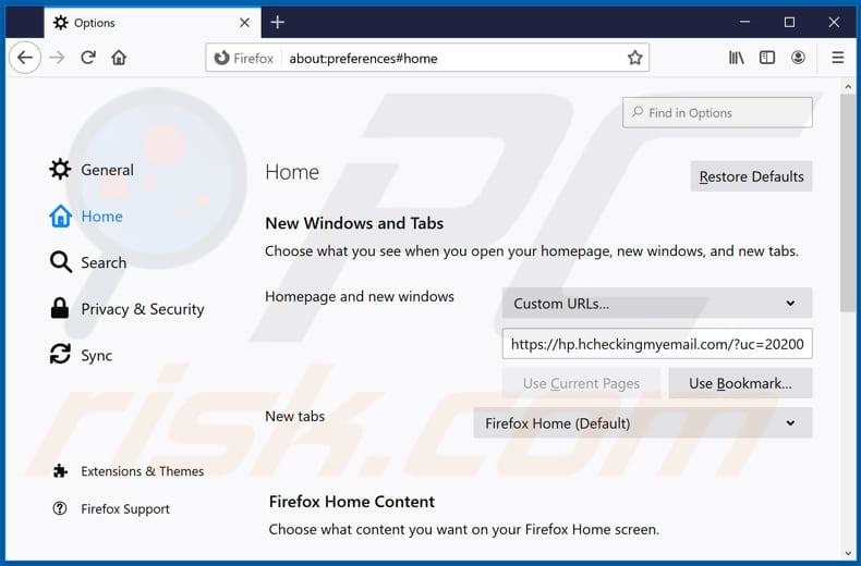 - STEP 4. Remove hcheckingmyemail.com homepage and default search engine from Mozilla Firefox.