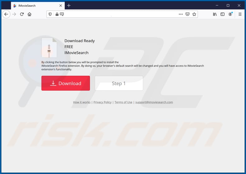 Website promoting IMovieSearch browser hijacker (Firefox):