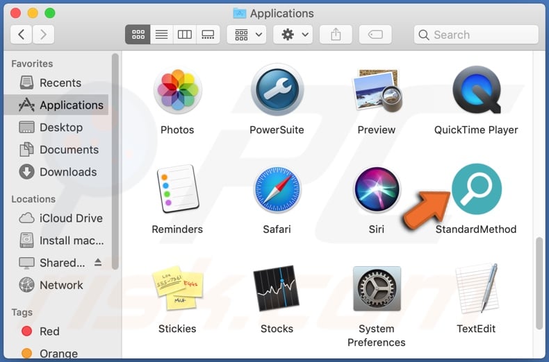 Remove StandardMethod-related potentially unwanted applications from your "Applications" folder: