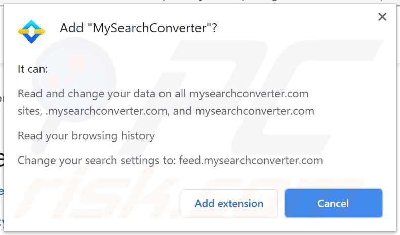 MySearchConverter browser hijacker asking for various permissions: