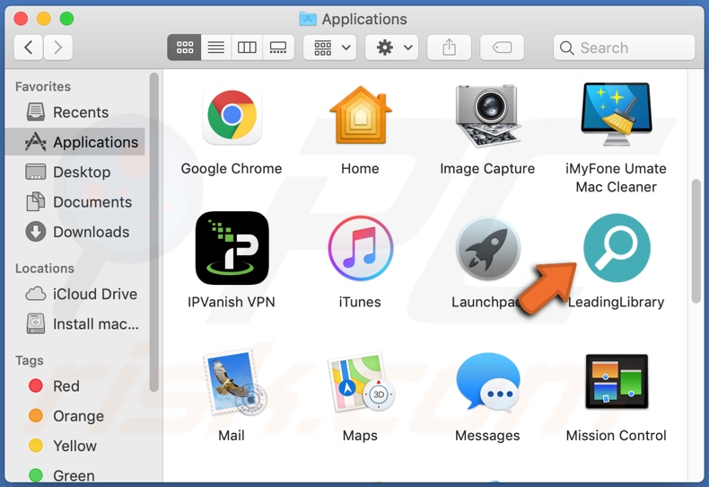 Remove LeadingLibrary-related potentially unwanted applications from your "Applications" folder:
