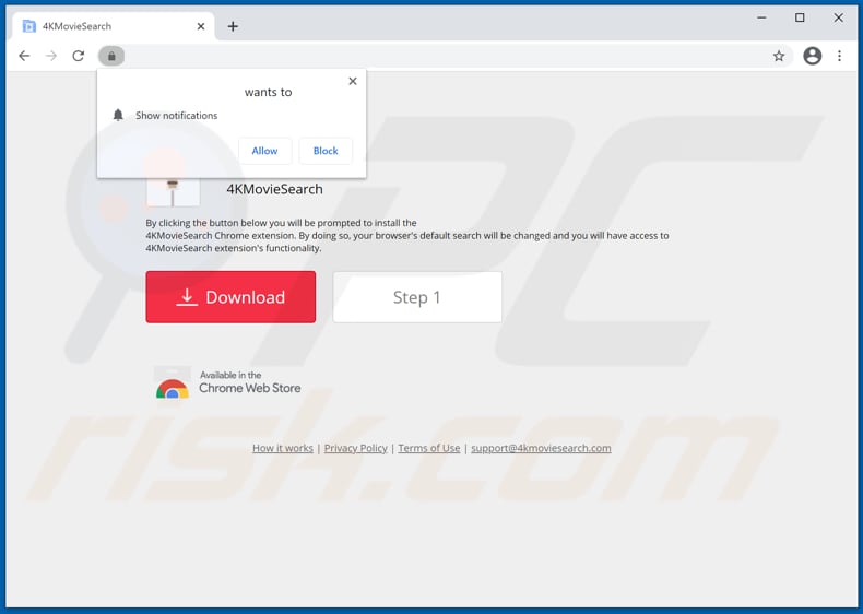 As mentioned, most browser hijackers can track data, and it is likely that 4KMovieSearch likewise has such capabilities. Browser hijackers typically monitor browsing activity (URLs visited, pages viewed, search queries typed, etc.) and gather personal information extracted from it (IP addresses, geolocations and other details). The collected data is then monetized by sharing with and/or selling to third parties (potentially, cyber criminals).
