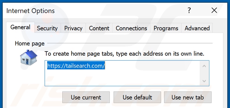(at the top right corner of Internet Explorer), select "Internet Options", in the opened window remove hxxp://tailsearch.com and enter your preferred domain, which will open each time you launch Internet Explorer. You can also enter about: blank to open a blank page when you start Internet Explorer.