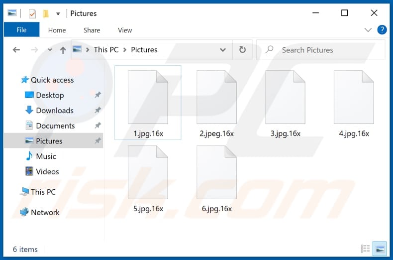 16x ransomware was discovered by Jirehlov Solace. It encrypts files, appends the ".16x" extension to their filenames (e.g., "1.jpg" would be renamed to "1.jpg.16x", "2.jpg" to "2.jpg.16x", and so on), and displays a Command Prompt window (a ransom message) containing instructions about how to contact the developers.