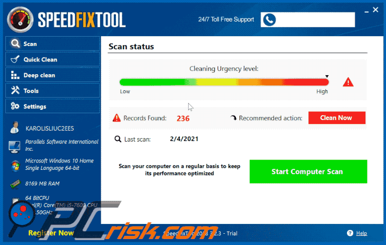 Research shows that SpeedFixTool has a scanner that checks the computer for junk and temporary files, cache issues problems with the system registry, however, it is possible that this program does not detect any genuine issues or fix them. SpeedFixTool might generate fake results and attempt to trick users into paying for registration - it might show a list of so-called 'issues' to trick users into believing that they can improve computer performance with the registered SpeedFixTool version.