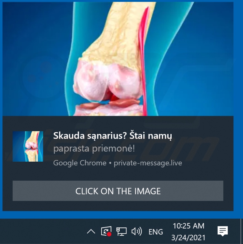 Additionally, most rogue websites use deceptive tactics (e.g., clickbait, fake CAPTCHA verification, etc.) to trick visitors into enabling their browser notifications. Should the private-message[.]live page's notifications be allowed, it starts running intrusive advertisement campaigns.