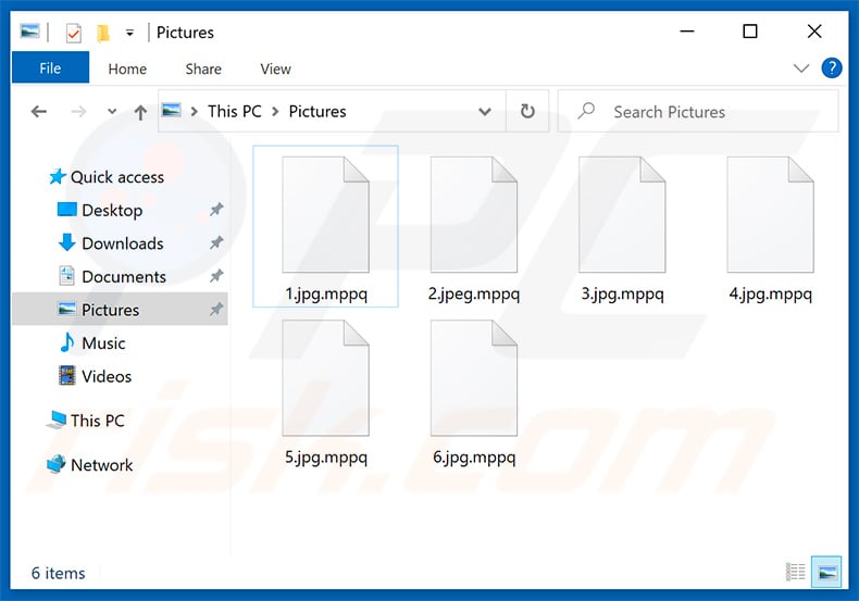 Screenshot of files encrypted by Mppq (".mppq" extension):