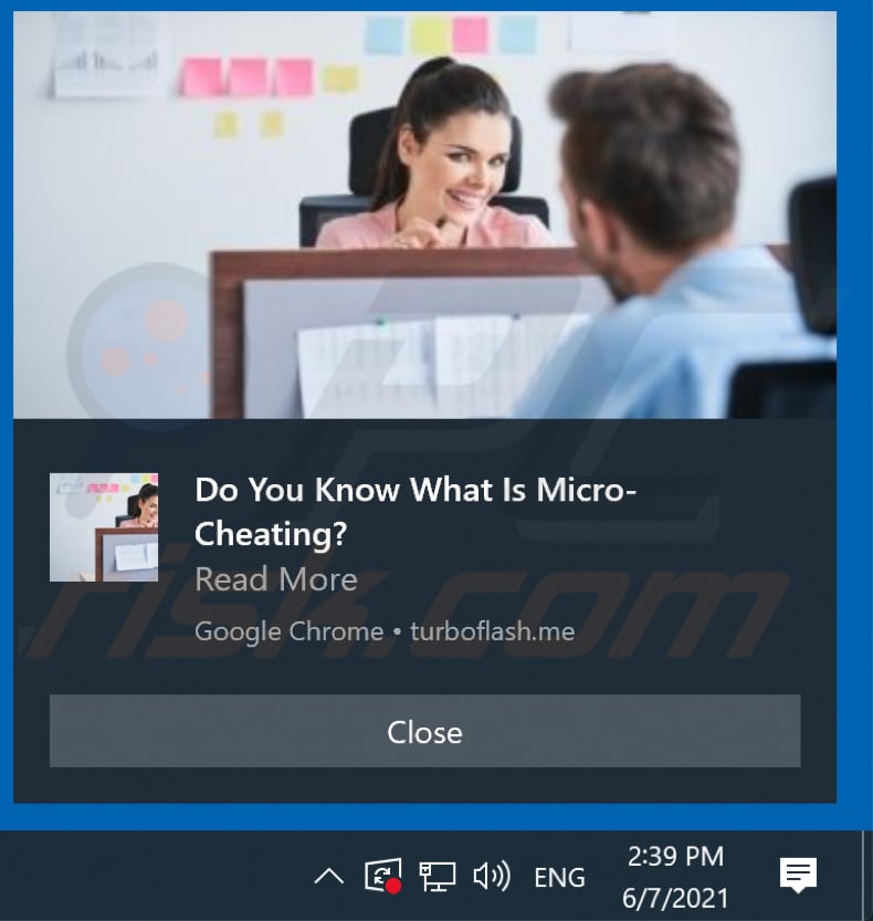 In most cases, their notifications advertise potentially malicious pages, applications, and so on. A couple of examples of notifications that turboflash[.]me displays are provided below.