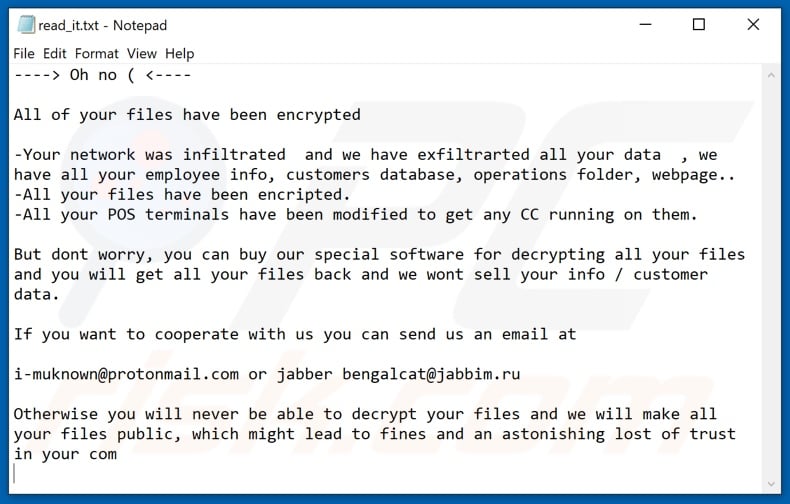 Text presented in Bengalcat ransomware's text file ("read_it.txt"):