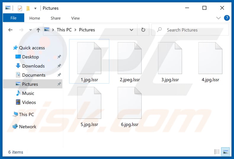Typically, ransomware encrypts files and appends its extension to their filenames, and demands ransom payment. Lssr appends the ".lssr" extension, for example, it renames a file named "1.jpg" to "1.jpg.lssr", "2.jpg" to "2.jpg.lssr", and so forth.