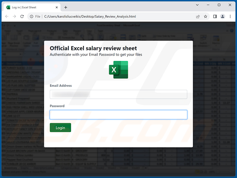 Screenshot of the attached phishing HTML document distributed via this spam email: