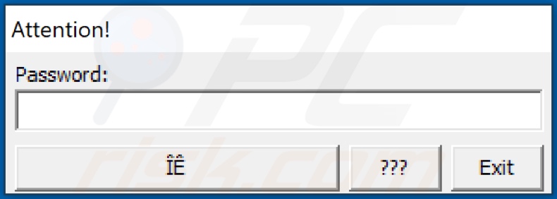 Screenshot of Army ransomware's pop-up window for entering the decryption password: