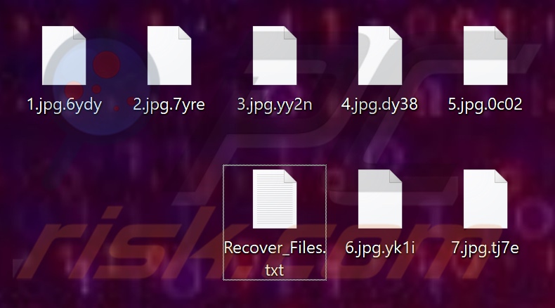 During the encryption process, files are appended with an extension consisting of a random character string. For example, a file initially named "1.jpg" would appear similar to "1.jpg.6ydy", "2.jpg" as "2.jpg.7yre", "3.jpg" as "3.jpg.yy2n", etc. Afterwards, a ransom note - "Recover_Files.txt" - is dropped onto the desktop. Additionally, AstraLocker changes the desktop wallpaper.
