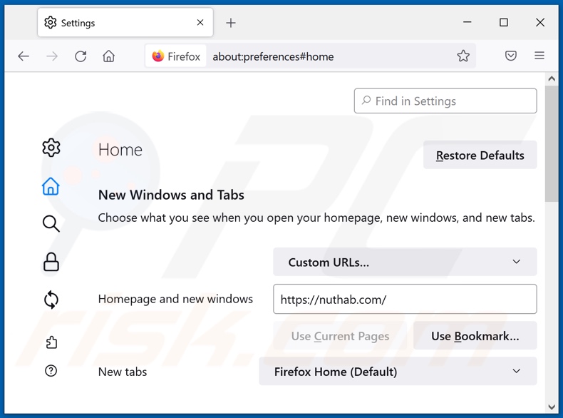 - STEP 3. Remove nuthab.com homepage and default search engine from Mozilla Firefox.