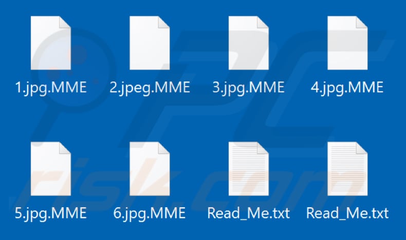 MME encrypts files and appends the ".MME" extension to their filenames (for example, it renames "1.jpg" to "1.jpg.MME", "2.jpg" to "2.jpg.MME"). MME also creates the "Read_Me.txt" file (a ransom note) containing instructions on how to contact the attackers.
