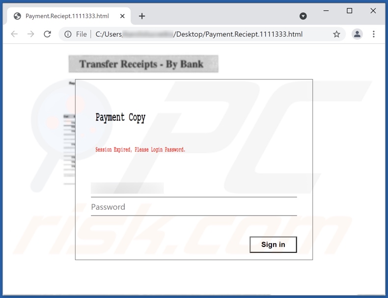 The scam emails claim that the Covid-19 stimulus payment was completed and request confirmation that the receipt has been received. When users open the attachment, it displays a message stating that the log-in session has expired and instructs them to sign in again.