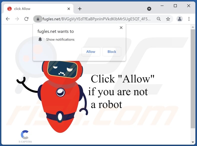 Furthermore, most pages of this type use clickbait or other deceptive content - to trick visitors into allowing their browser notifications. Fugles[.]net uses fake CAPTCHA verification, and should its notifications be enabled - the website will begin running intrusive ad campaigns.