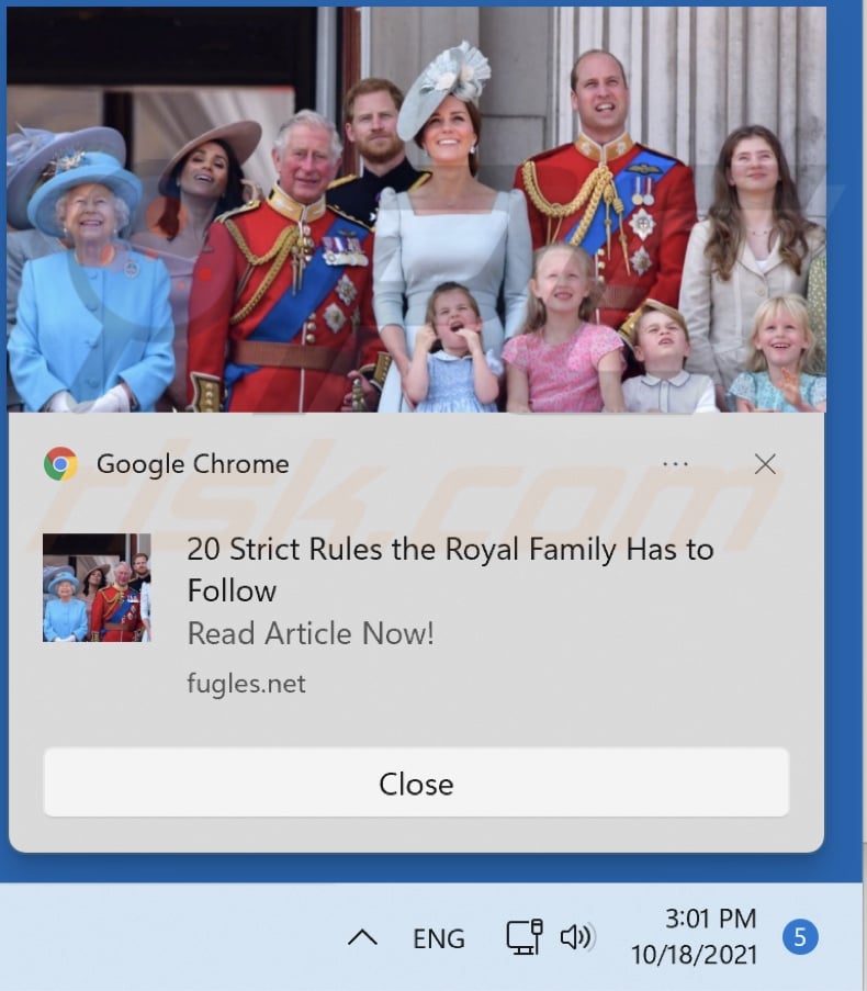 Why am I seeing ads (browser notifications) delivered by fugles[.]net in the right lower corner of my desktop?
