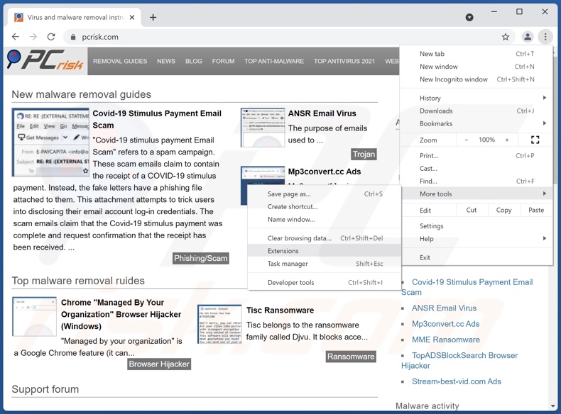 (at the top right corner of Google Chrome), select "More tools" and click "Extensions". Locate "MinePass", select this entry and click the trash can icon.