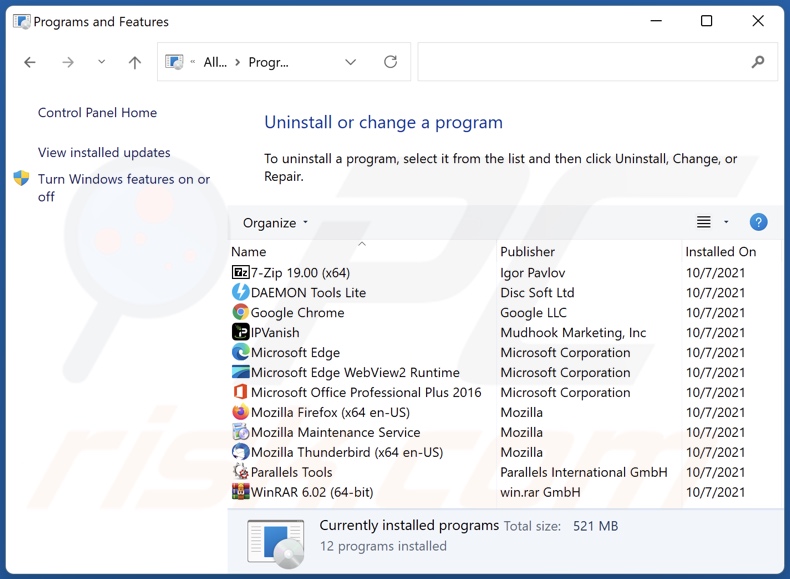 In the uninstall programs window: look for any recently installed suspicious applications (for example, "Perfect-Converter"), select these entries and click "Uninstall" or "Remove".