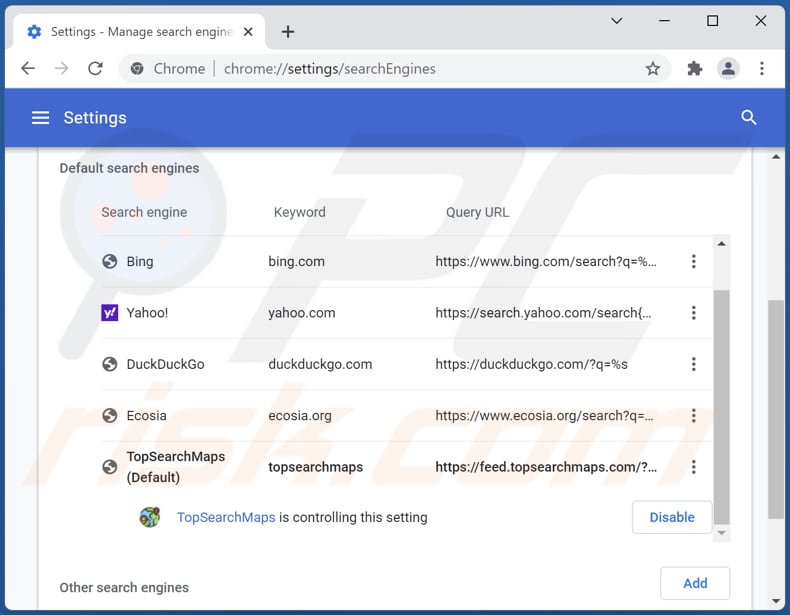 TopSearchMaps modifies settings such as the address of a homepage, new tab page, and homepage. It sets them to topsearchmaps.com - a fake search engine that can redirect users to search.yahoo.com, nearbyme.io, and possibly other addresses. Topsearchmaps.com can show results generated by trustworthy and untrustworthy search engines.