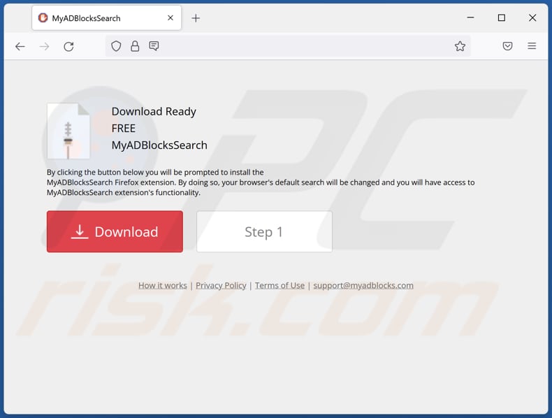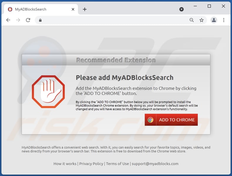 Deceptive websites promoting MyADBlocksSearch browser hijacker: