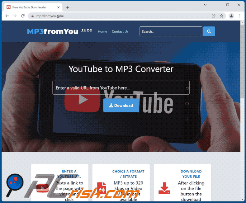 Mp3fromyou[.]tube is an untrustworthy website, which our research team found when inspecting rogue advertising networks. This site offers the illegal service of converting YouTube videos (via links) to downloadable MP3 audio files.