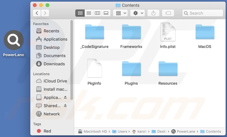 Remove PowerLane-related potentially unwanted applications from your "Applications" folder: