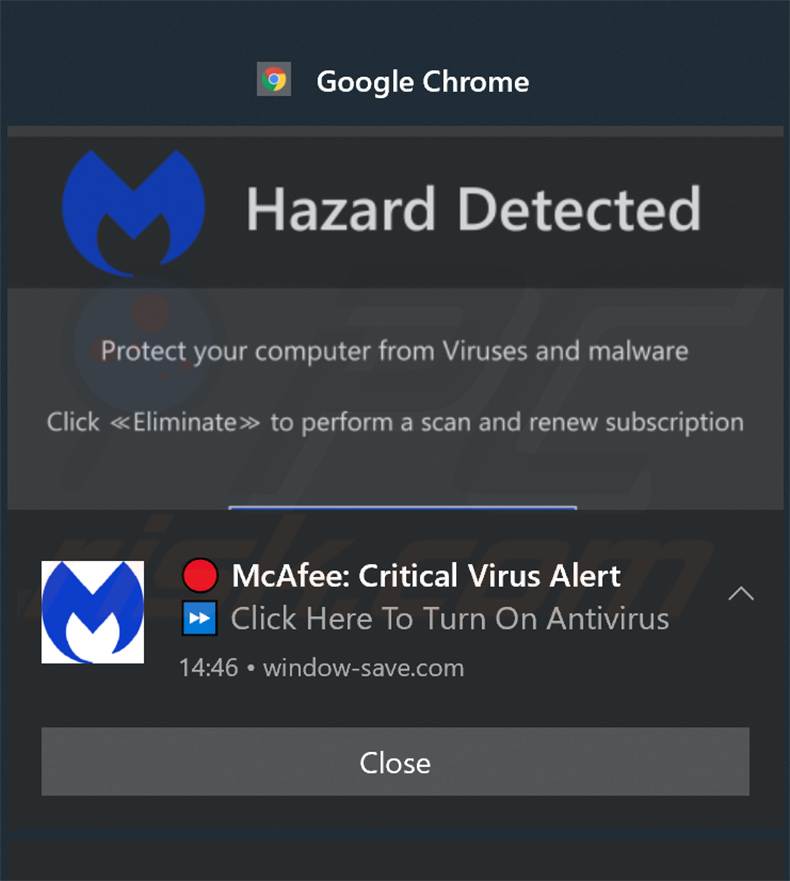 Affiliates behind window-save[.]com use it to promote legitimate software to collect illegitimate commissions. They get paid after users purchase subscriptions through their page. Another detail about window-save[.]com is that it can show untrustworthy notifications, claiming that a computer is infected and other scams.