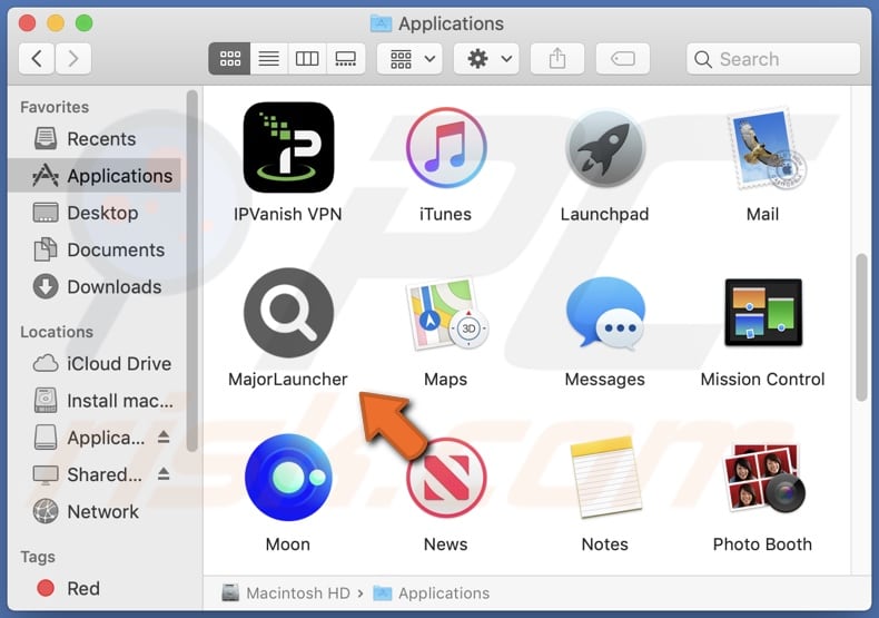 Remove MajorLauncher-related potentially unwanted applications from your "Applications" folder: