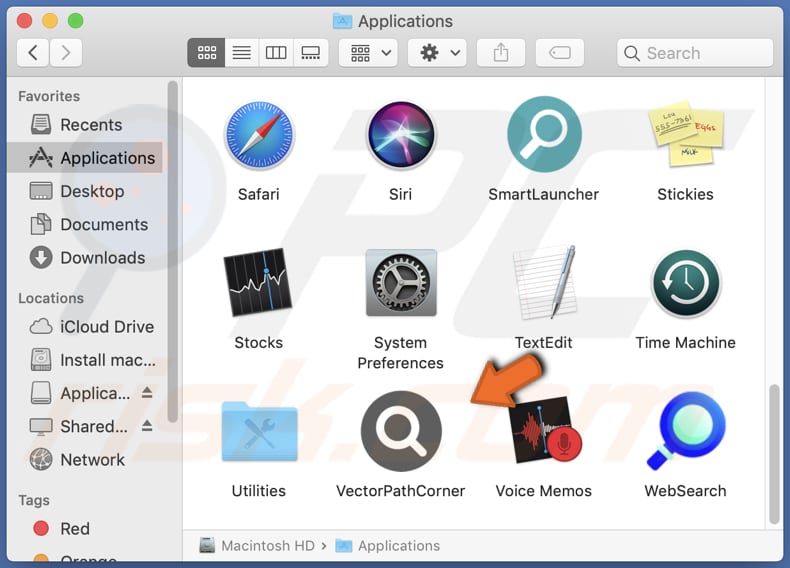 Remove VectorPathCorner-related potentially unwanted applications from your "Applications" folder: