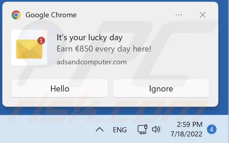 Why am I seeing ads (browser notifications) delivered by adsandcomputer[.]com in the right lower corner of my desktop?