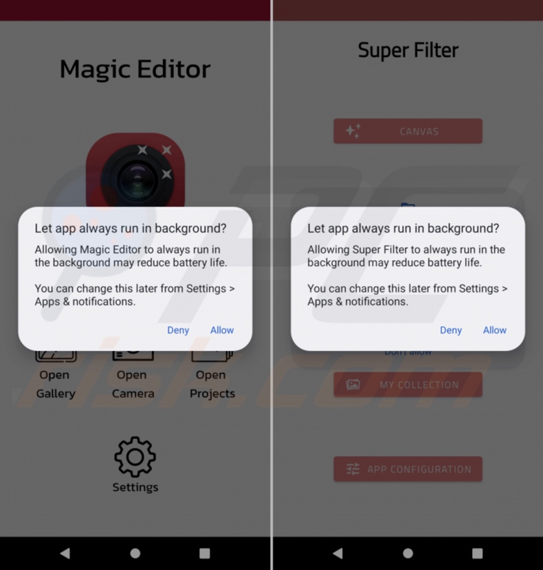 | Damage | Stolen personal information (private messages, logins/passwords, etc.), decreased device performance, battery is drained quickly, decreased Internet speed, huge data losses, monetary losses, stolen identity (malicious apps might abuse communication apps). |