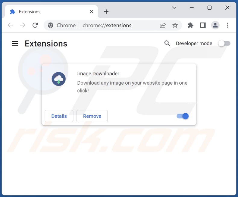 (at the top right corner of Google Chrome), select "More tools" and click "Extensions". Locate "Image Downloader" and other suspicious extensions, select these entries and click "Remove".