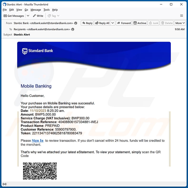 Phishing/ScamAlso Known As: Standard Bank phishing email
