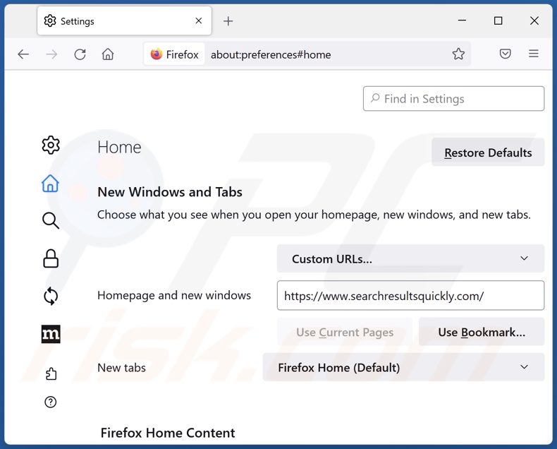 - STEP 3. Remove searchresultsquickly.com homepage and default search engine from Mozilla Firefox.