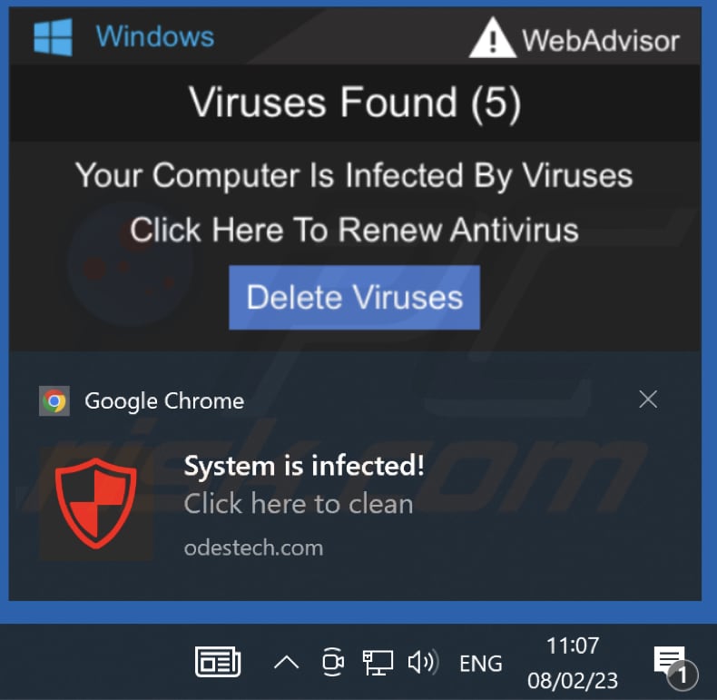 Why am I seeing ads (browser notifications) delivered by odestech[.]com in the right lower corner of my desktop?