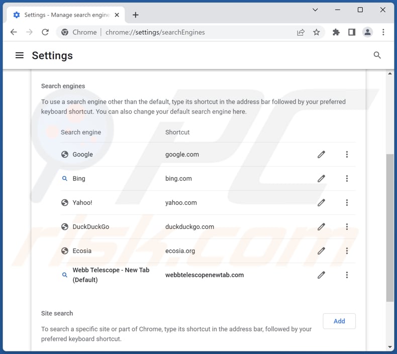 Webb Telescope - New Tab browser hijacker removal from Internet browsers: