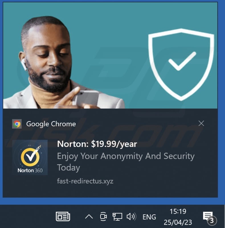 Why am I seeing ads (browser notifications) delivered by fast-redirectus[.]xyz in the right lower corner of my desktop?