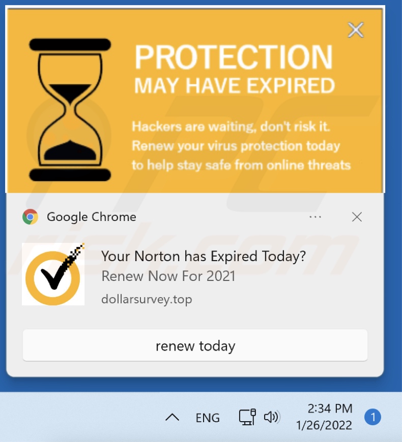 Why am I seeing ads (browser notifications) delivered by dollarsurvey[.]top in the right lower corner of my desktop?