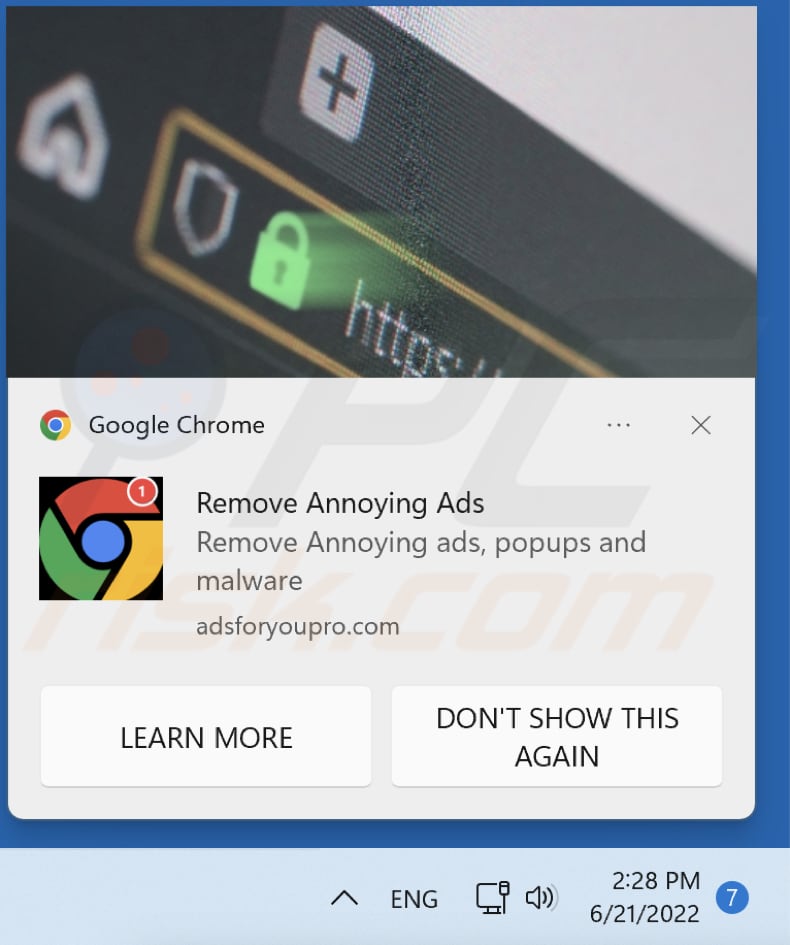 Why am I seeing ads (browser notifications) delivered by adsforyoupro[.]com in the right lower corner of my desktop?