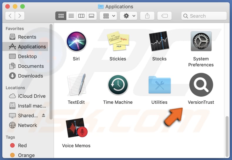 Remove VersionTrust-related potentially unwanted applications from your "Applications" folder: