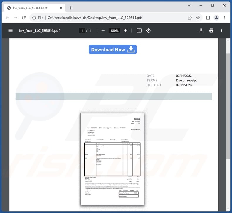 Screenshots of malicious PDF email attachments used to proliferate WikiLoader malware: