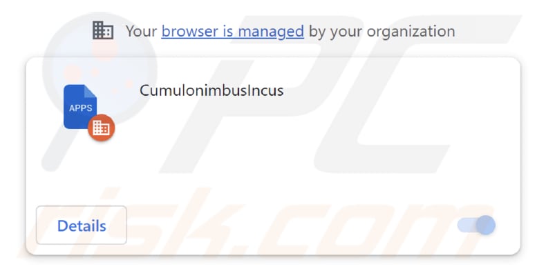 CumulonimbusIncus reads and changes data on all websites, manages extensions and themes, and adds the "Managed by your organization" feature to Chrome browsers.