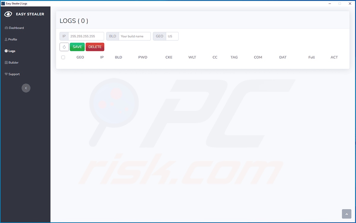 Screenshots of EasyStealer's admin panel:
