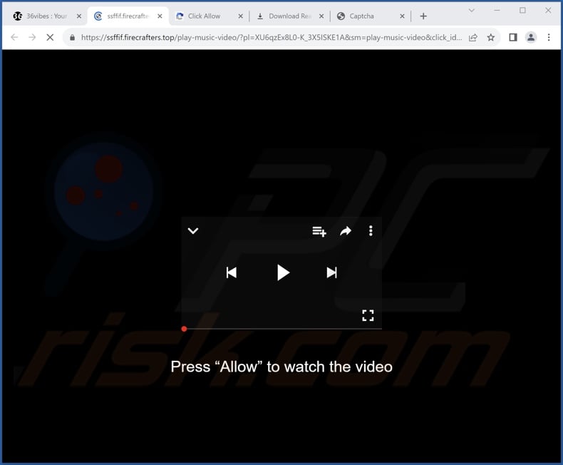 When we visited the firecrafters[.]top site, it displayed a fake video player. Below the image were instructions to – "Press 'Allow' to watch the video". By completing this step, instead of gaining access to the hoax video, the user will unintentionally give firecrafters[.]top permission to deliver browser notifications.